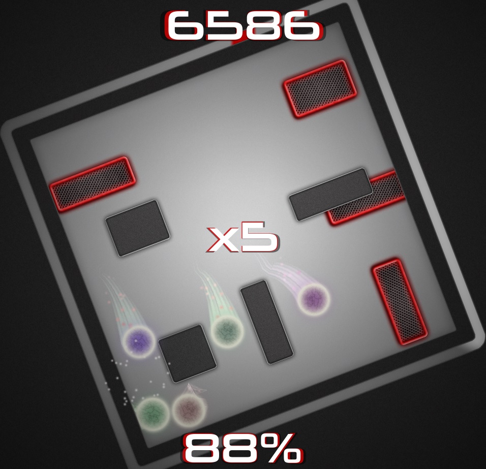 Orbs split every 3 seconds and absorbs each other on collision. Loosing any orbs decreases overal orbs scale percentage. If scale drops to 0% > POP > no orbs, game over ;)